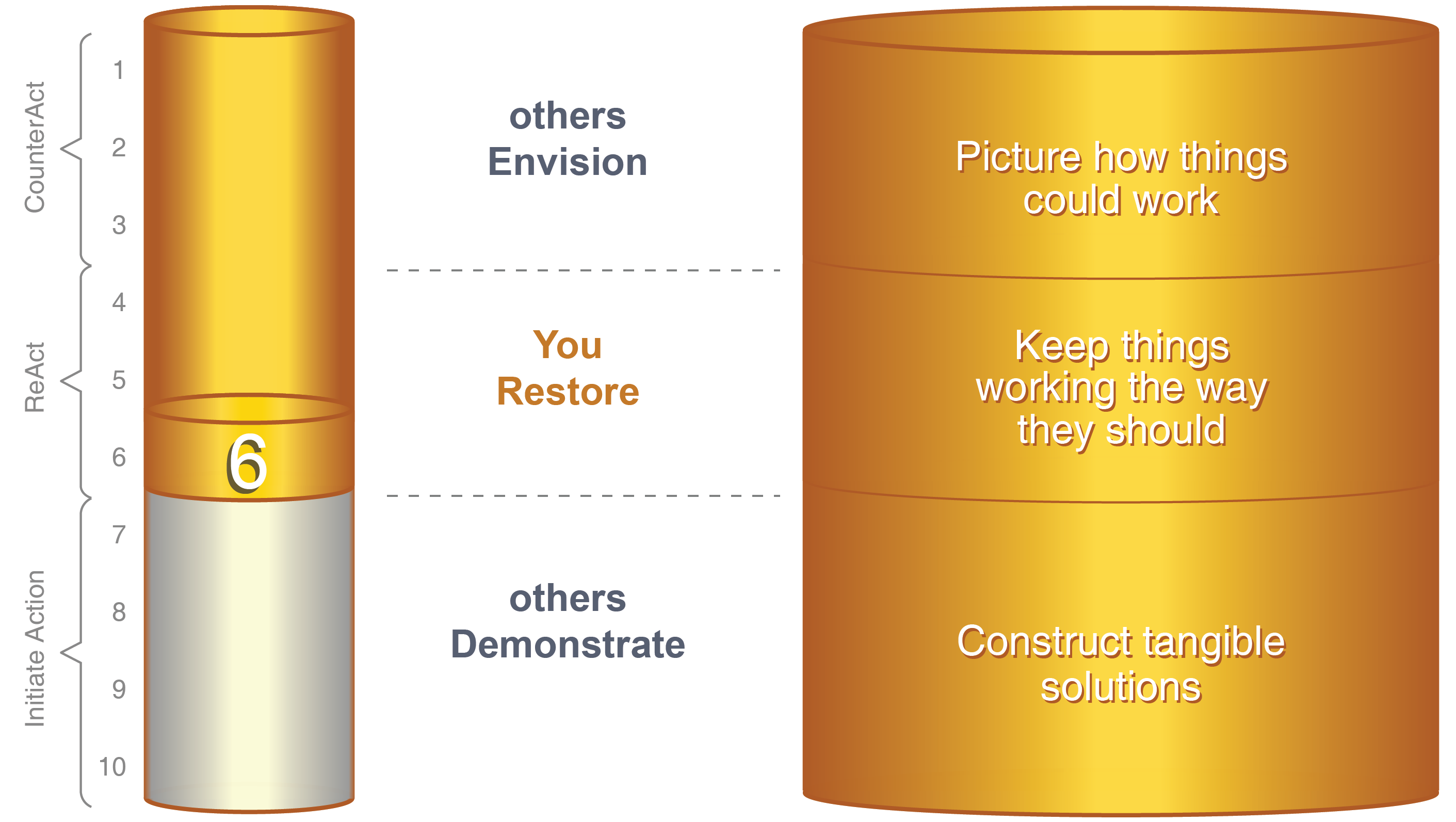 Don’t let anyone stereotype you as contributing or “being” just one of the Action Modes. Your contribution begins with innovating and continues until you adapt the solution.