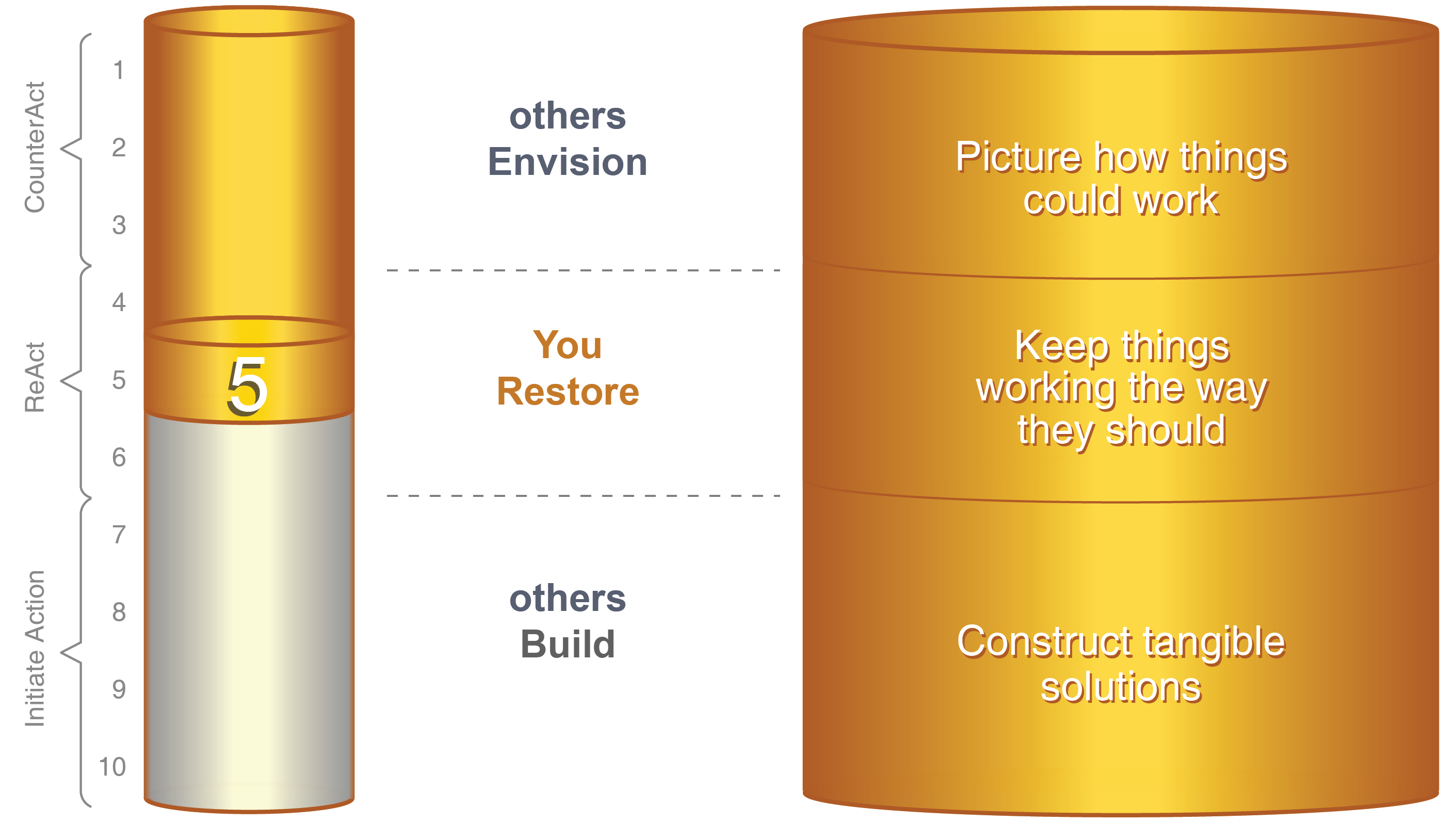 Don’t let anyone stereotype you as contributing or “being” just one of the Action Modes. Your contribution begins with innovating and continues until you adapt the solution.