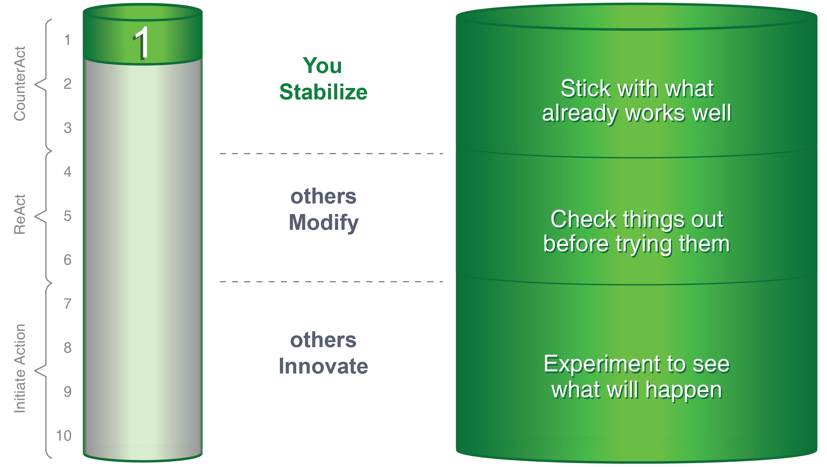 Don’t let anyone stereotype you as contributing or “being” just one of the Action Modes. Your contribution begins with specifying and continues until you stabilize the solution.